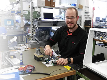 Steffen Gölitz is an assembly operator at Analytik Jena in Langewiesen. When he began his apprenticeship in 2014, he was the only apprentice at the site. Soon he will become a instructor himself to mentor future generations of apprentices.