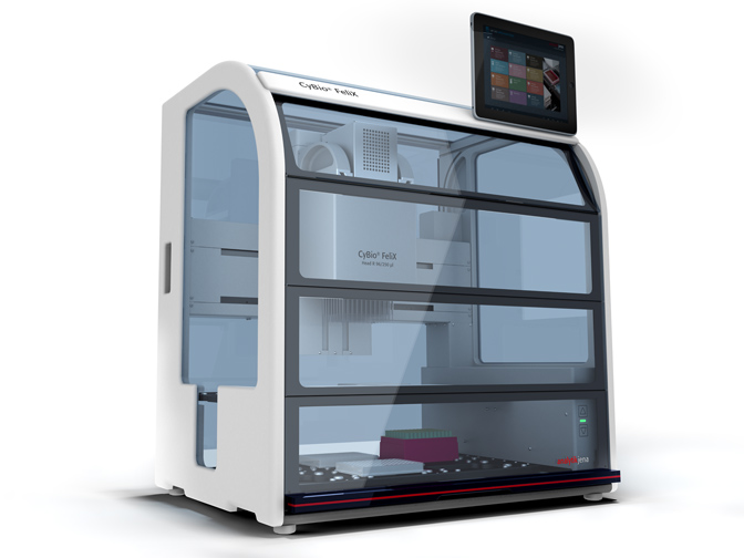 CyBio® FeliX is a compact liquid handling platform with 12 deck positions for every lab bench and combines highest precision with volume- and format-flexibility for automated 1- to 384-channel