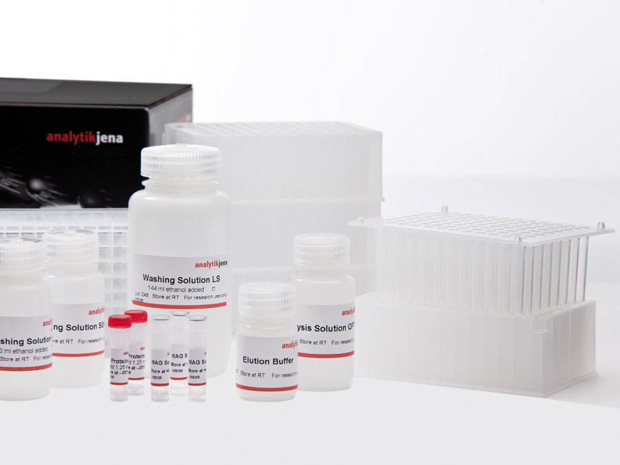 The innuPREP RNA Virus PLUS Kit - KFFLX can be used to automate extraction of viral RNA from up to 96 samples in just approx. 45 minutes. The method, which is based on magnetic particle separation and on the use of patented extraction chemistry in the KingFisher® FLEX system, can be used for isolating an extremely wide variety of starting materials, such as cell-free bodily fluids, biopsies, swabs and stool samples. The isolated viral nucleic acids are then available for immediate use in downstream applications. The high quality of the RNA has been successfully tested and confirmed using the TaqMan® real-time PCR (after cDNA synthesis).