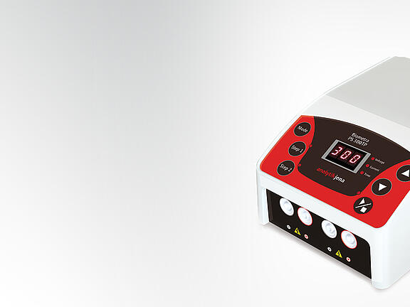 The PS 300TP power supply unit is ideal for laboratories with limited space or the need for many power supplies for all common applications with agarose and polyacrylamide gels due to its extremely small footprint and individually adjustable performance data.
